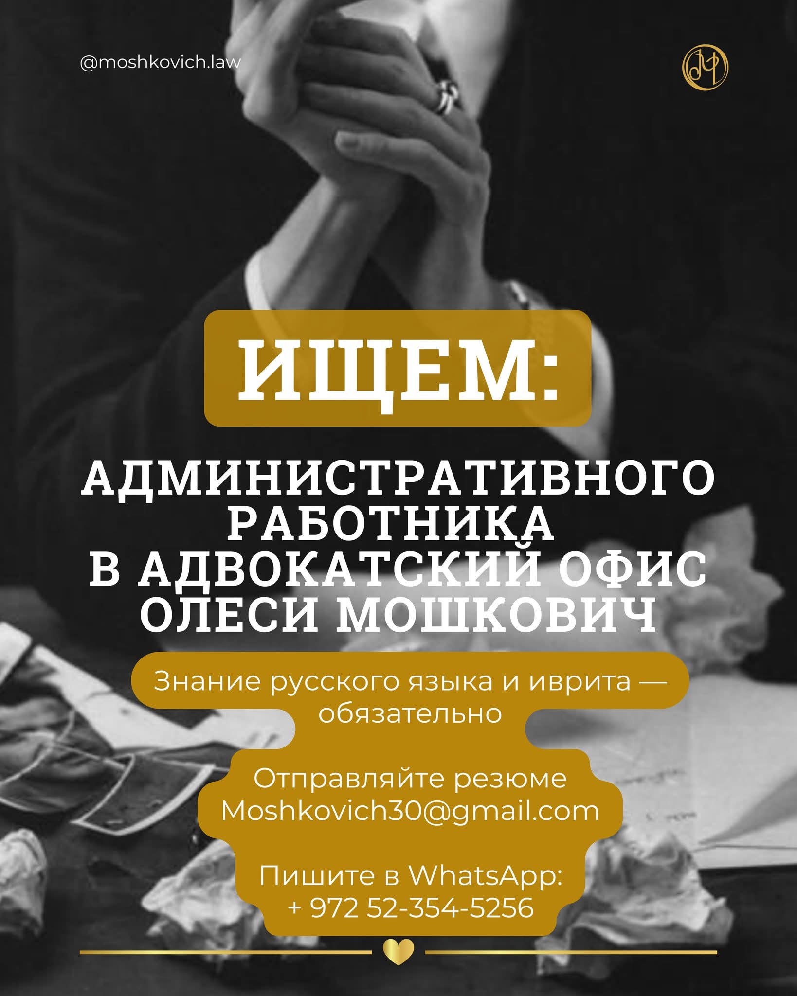 Отправьте резюме на Moshkovich30@gmail.com с темой «Вакансия», либо же на WhatsApp 0523545256 и мы свяжемся с вами!